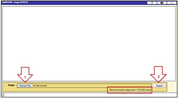31. 3. Click on the Choose File (1) option to select the image and when it’s selected, click on the Send (2) button to load it. Note that it is recommended for you to load an image previously set to 700 X 355 pixels to avoid the image to be stretched or squeezed in the process: