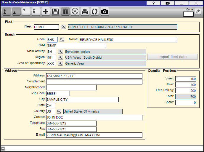 A Branch is the same as a garage or terminal location where vehicles of a given Fleet are alocated to. Some fleets only have one Branch, and in these cases the Branch information should be identical to the Fleet information. Many fleets have multiple Branches located in different parts of the state, country or the world.