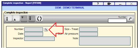 3. When the screen loads, the last imported inspection for the active Fleet/Branch will be automatiaclly selected. Observe the date and available information on screen. If the inspection that is displayed is not the inspection you wish to process, use the scroll buttons or the search button to select the desired inspection.