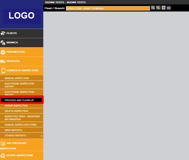 2. To access this function: Complete Inspection menu > Process and Clean-Up option